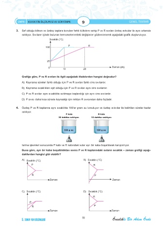 3. Saf olduğu bilinen ve özdeş kaplara konulan farklı kütlelere sahip P ve R sıvıları özdeş ısıtıcılar ile aynı ortamda