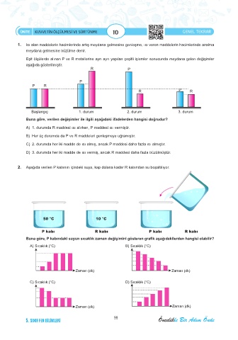 2. Aşağıda verilen P kabının içindeki suya, kap dolana kadar R kabından su boşaltılıyor.