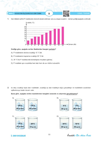 1. Katı hâldeki saf bir P maddesinin düzenli olarak ısıtılması sonucu oluşan sıcaklık – zaman grafiği aşağıda verilmiştir.
