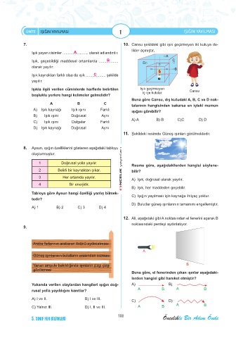 Işıkla ilgili verilen cümlelerde harflerle belirtilen Işık geçirmeyen Cansu