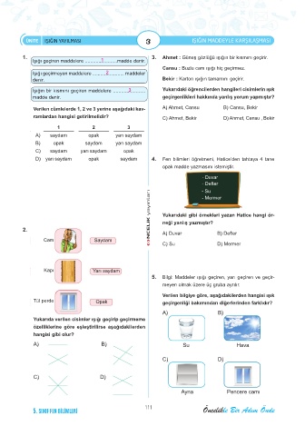 5. Bilgi: Maddeler ışığı geçiren, yarı geçiren ve geçir-
