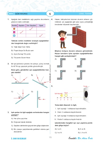 ÜNİTE IŞIĞIN YAYILMASI 5 GENEL TEKRAR