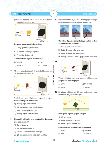 7. Şekildeki düzenekte el feneri ile kutunun perde üze- 10. Ömer, manzarayı seyrederken zaman geçtikçe aşağı-