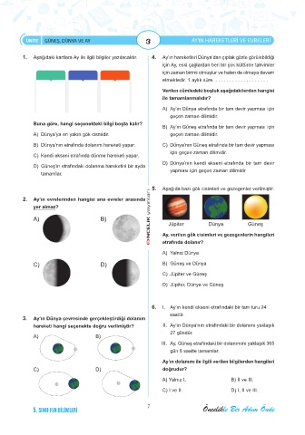 ÜNİTE GÜNEŞ, DÜNYA VE AY 3 AY’IN HAREKETLERİ VE EVRELERİ