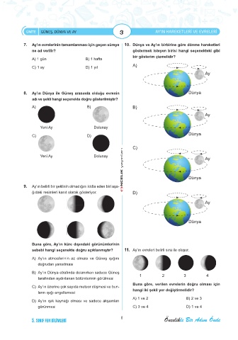 7. Ay’ın evrelerinin tamamlanması için geçen süreye 10. Dünya ve Ay’ın birbirine göre dönme hareketleri