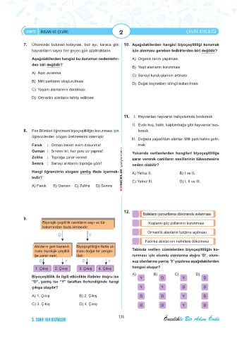 7. Ülkemizde bulunan kelaynak, boz ayı, karaca gibi 10. Aşağıdakilerden hangisi biyoçeşitliliği korumak