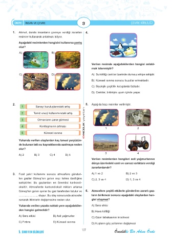 3. Fosil yakıt kullanımı sonucu atmosfere gönderi- A) 1 ve 2 B) 2 ve 3