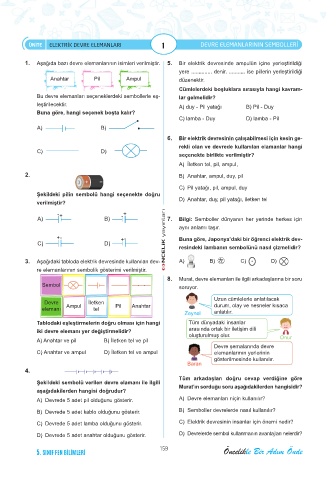 1. Aşağıda bazı devre elemanlarının isimleri verilmiştir. 5. Bir elektrik devresinde ampulün içine yerleştirildiği