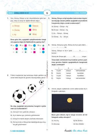 1. Sıla, Güneş, Dünya ve Ay’ı büyüklüklerine göre kar- 3. Güneş, Dünya ve Ay boyutları bakımından büyük-
