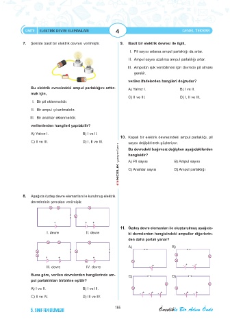 7. Şekilde basit bir elektrik devresi verilmiştir. 9. Basit bir elektrik devresi ile ilgili,