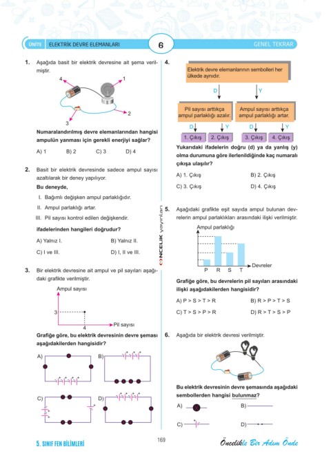 II. Ampul parlaklığı artar. 5. Aşağıdaki grafikte eşit sayıda ampul bulunan dev-