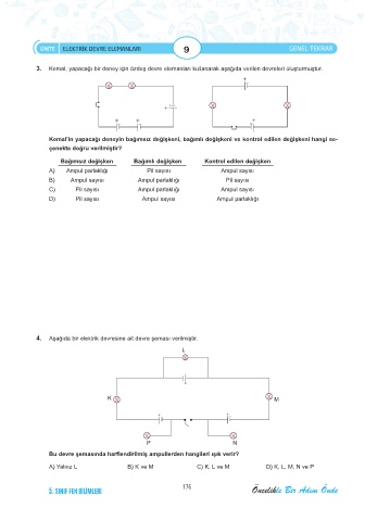3. Kemal, yapacağı bir deney için özdeş devre elemanları kullanarak aşağıda verilen devreleri oluşturmuştur.