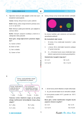 ÜNİTE GÜNEŞ, DÜNYA VE AY 6 GENEL TEKRAR