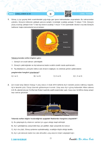 ÜNİTE GÜNEŞ, DÜNYA VE AY 11 GENEL TEKRAR