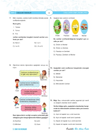 7. Bilim insanları, canlıları belirli özellikleri dikkate alarak 9. Aşağıda bazı canlılar verilmiştir.