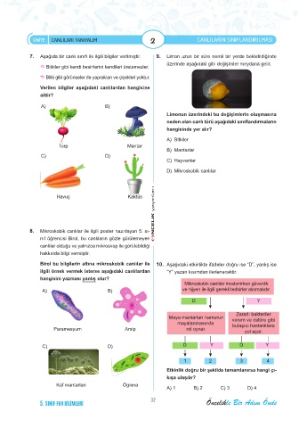 7. Aşağıda bir canlı sınıfı ile ilgili bilgiler verilmiştir. 9. Limon uzun bir süre nemli bir yerde bekletildiğinde