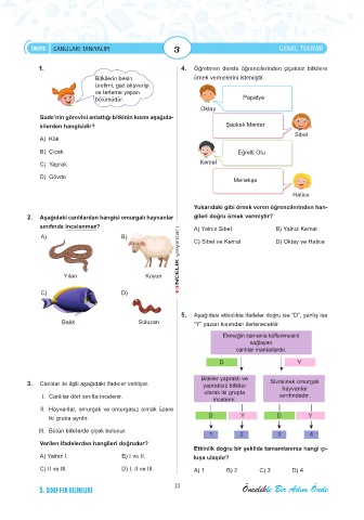 ÜNİTE CANLILARI TANIYALIM 3 GENEL TEKRAR