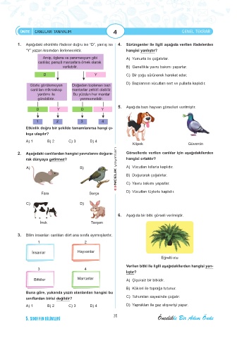 ÜNİTE CANLILARI TANIYALIM 4 GENEL TEKRAR