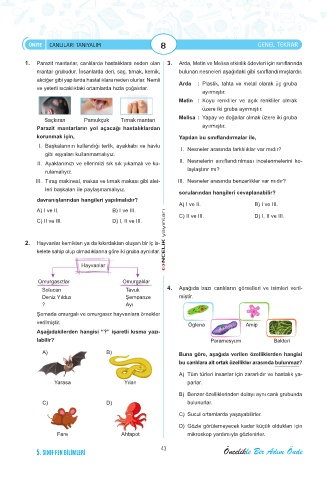 ÜNİTE CANLILARI TANIYALIM 8 GENEL TEKRAR