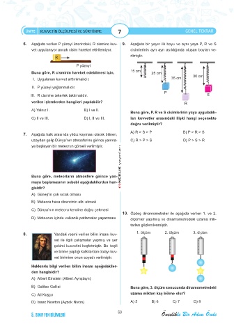 6. Aşağıda verilen P yüzeyi üzerindeki, R cismine kuv- 9. Aşağıda bir yayın ilk boyu ve aynı yaya P, R ve S