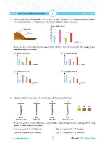 Buna göre, bu zeminlerin plastik topa uyguladıkları sürtünme kuvvetleri arasındaki ilişki aşağıdaki gra-