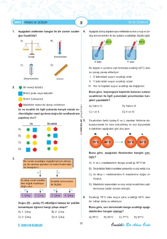 yapılmış olur? 5. Sıcaklıkları farklı özdeş K ve L cisimleri birbirine do-