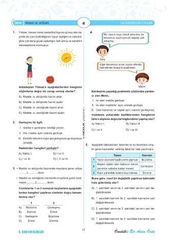 D) Erime Donma D) 1. satırdaki kavram ile 3. satırdaki kavramın yeri