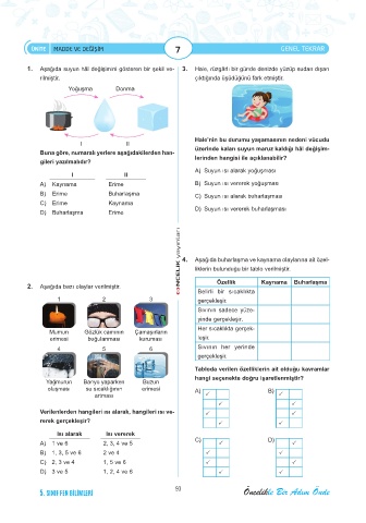 1. Aşağıda suyun hâl değişimini gösteren bir şekil ve- 3. Hale, rüzgârlı bir günde denizde yüzüp sudan dışarı